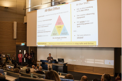 In September, over 400 people gathered at the University of Warwick for the annual Society of Research Software Engineering conference. RSEs from seven government departments gave 11 talks and workshops on a wide range of topics from the energy efficiency of supercomputers to climate communication. This year there were four government sponsors: The Met Office, AWE’s strategic Centre of Excellence in Scientific Computing based at the Edinburgh Parallel Computing Centre (EPCC), the Science and Technology Facilities Council (STFC), and The Alan Turing Institute. Sponsoring such events gives us the chance to promote public service and government research while fostering new connections with industry and academia.